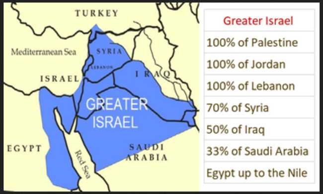 Groß-Israel (Eretz-Israel) Die Judenheit darf ungestraft das Land einer anderen Nation rauben, weil ihnen dieses Land angeblich vor 2000 Jahren einmal gehört hätte - gemäß des Lügenbuches "Bibel" (Altes Testament).